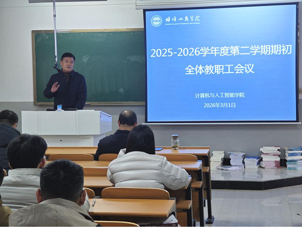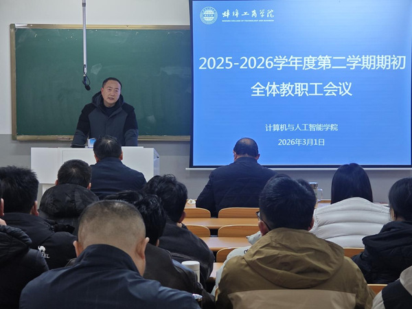 为统筹部署新学期各项工作,明晰工作重点、压实工作责任,3月1日,我院在明理楼B301召开2025-2026学年第二学期期初全体教职工会议。会议全面总结寒假工作成效,对新学期教学、科研、党建与安全等各项重点工作进行系统安排。学院院长徐军、副院长夏日、党总支副书记宋秀磊出席会议,学院全体教职工参会,会议由徐军主持。
